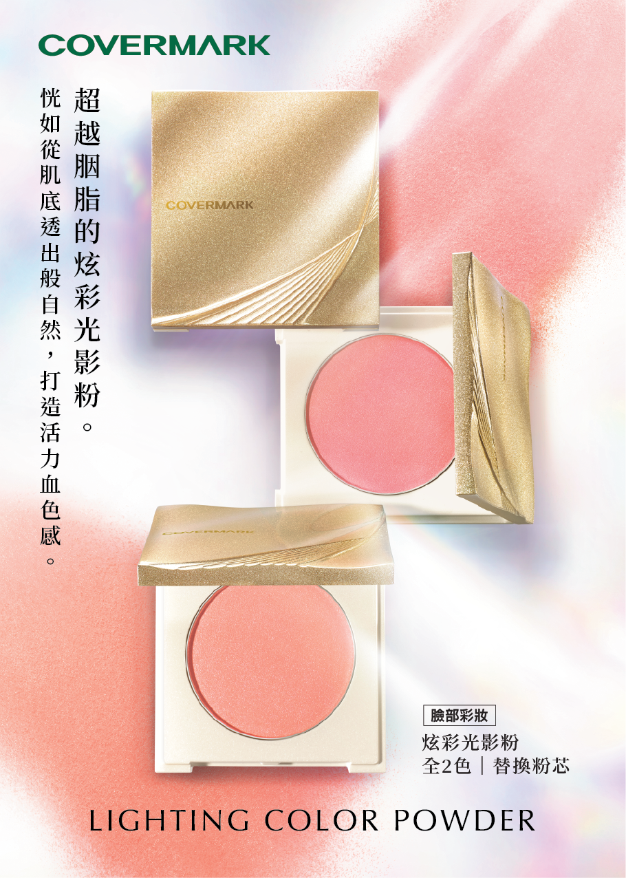 作為底妝流程最後一個步驟使用,於臉頰、太陽穴、髮際線、下巴尖等部位。