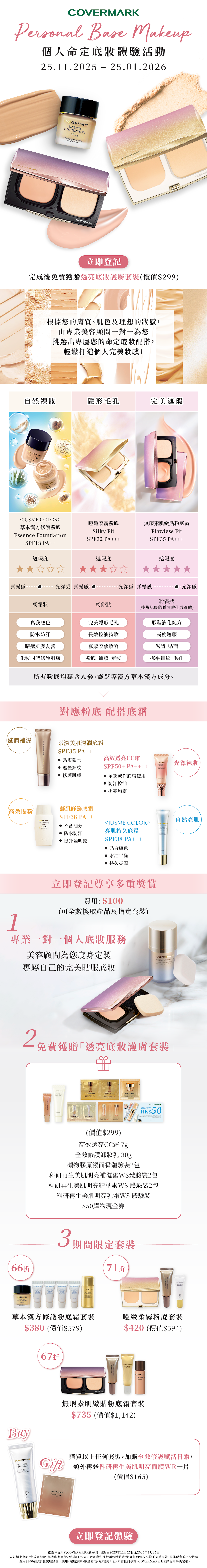 預約費用:$100 (可全數兌換正價產品及指定套裝)